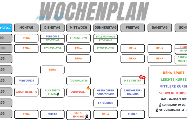 Du bist gerade im Club aber es findet gerade kein Kurs statt? Doch – und zwar extra für dich! In unserem virtuellen Kursraum kannst du den für dich passenden Kurs aus über 10.000 Kursvideos von unserer Online-Gesundheitsplattform pur-life.de aussuchen. Das zahlt sich aus!